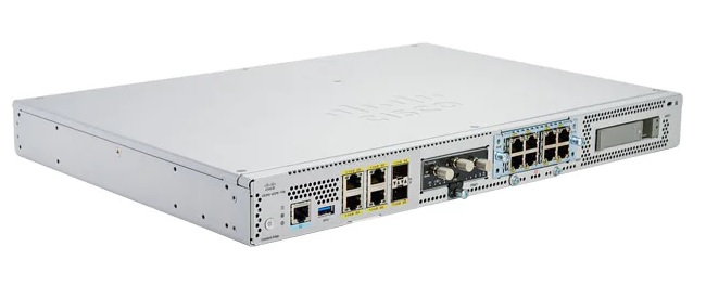 C8300-1N1S-4T2X:1RU、1 个 NIM 模块插槽、1 个 SM 模块插槽、1 个 PIM 模块插槽和 4 个 1GbE 接口 + 2 个 10GbE 接口 – 高达 15 Gbps SD-WAN 吞吐量